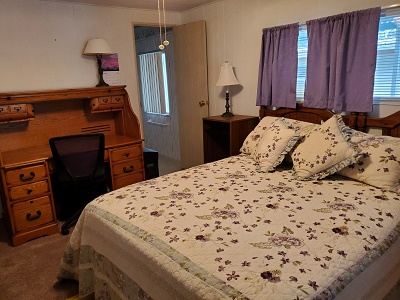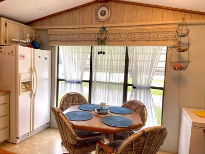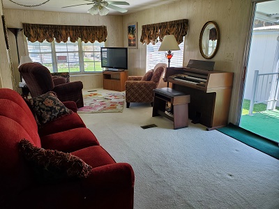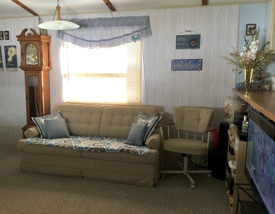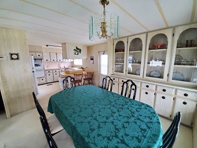1978 24×44 Double wide plus carport, 2 bedrooms with walk-in closets, 2 full baths, large living room, dining room, and kitchen. Large bay windows in living and dining rooms. Attached 8.5×12 shed with access from inside the house to washer and dryer, workbench area and storage shelves. All furnishings are included as well as kitchen appliances and some dishes. Ceiling fans located in living room, master bedroom and shed. A/C unit new in 2018; water heater new in 2013.