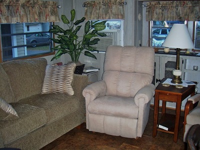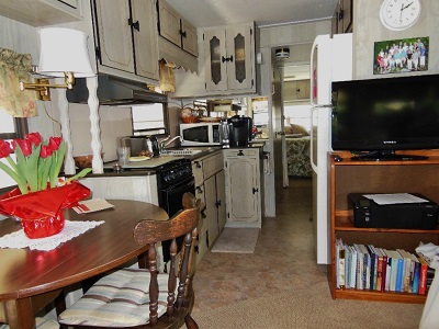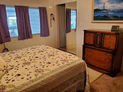 1980 CREE 8’x35’ – 2 tip outs – 12’ in living room and bedroom. All new windows, new flooring, outside plumbing replaced. Extra roof with covered patio. Attached shed with tools. Furnishings, linens, cookware, etc. included.