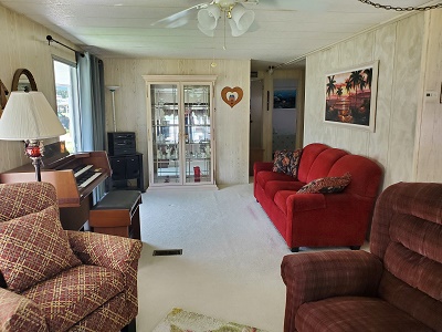 Single wide, 1 BD home with carport and large Florida Room. Central air/heat in home and Florida Room, heat pump new in 2020. Has 1 bathroom with a walk-in shower. Painted in 2020. New water heater and washer in 2020. New carpet installed in 2021. Has newer vinyl windows and stove. Has attached room at the rear of the house with washer and dryer, and large storage shed. Furniture and furnishings are included in the price.